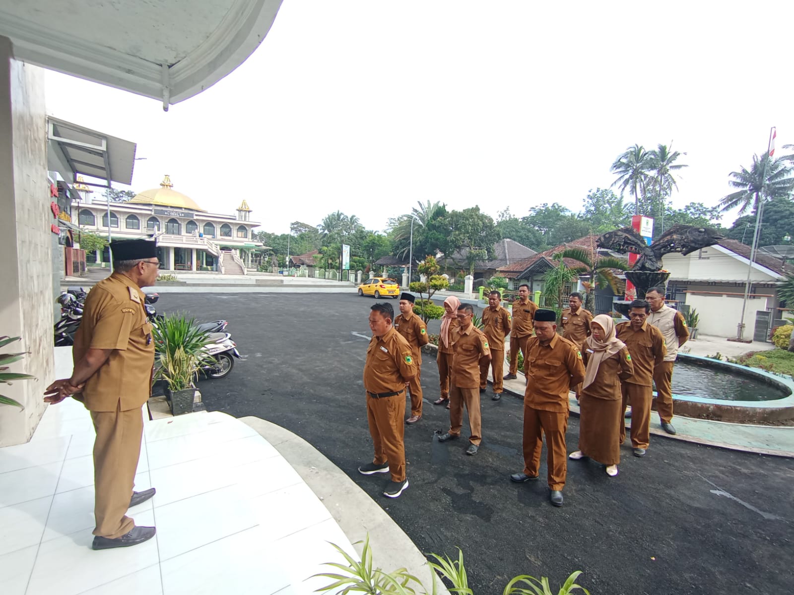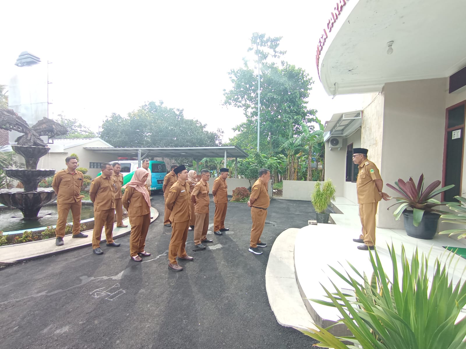 Pemerintah Desa Caracas, Kecamatan Cilimus, Kabupaten Kuningan, melaksanakan kegiatan apel rutin perangkat desa pada hari Senin, 6 April 2026. Kegiatan tersebut berlangsung di halaman Kantor Kepala Desa Caracas dan diikuti oleh seluruh perangkat desa.
