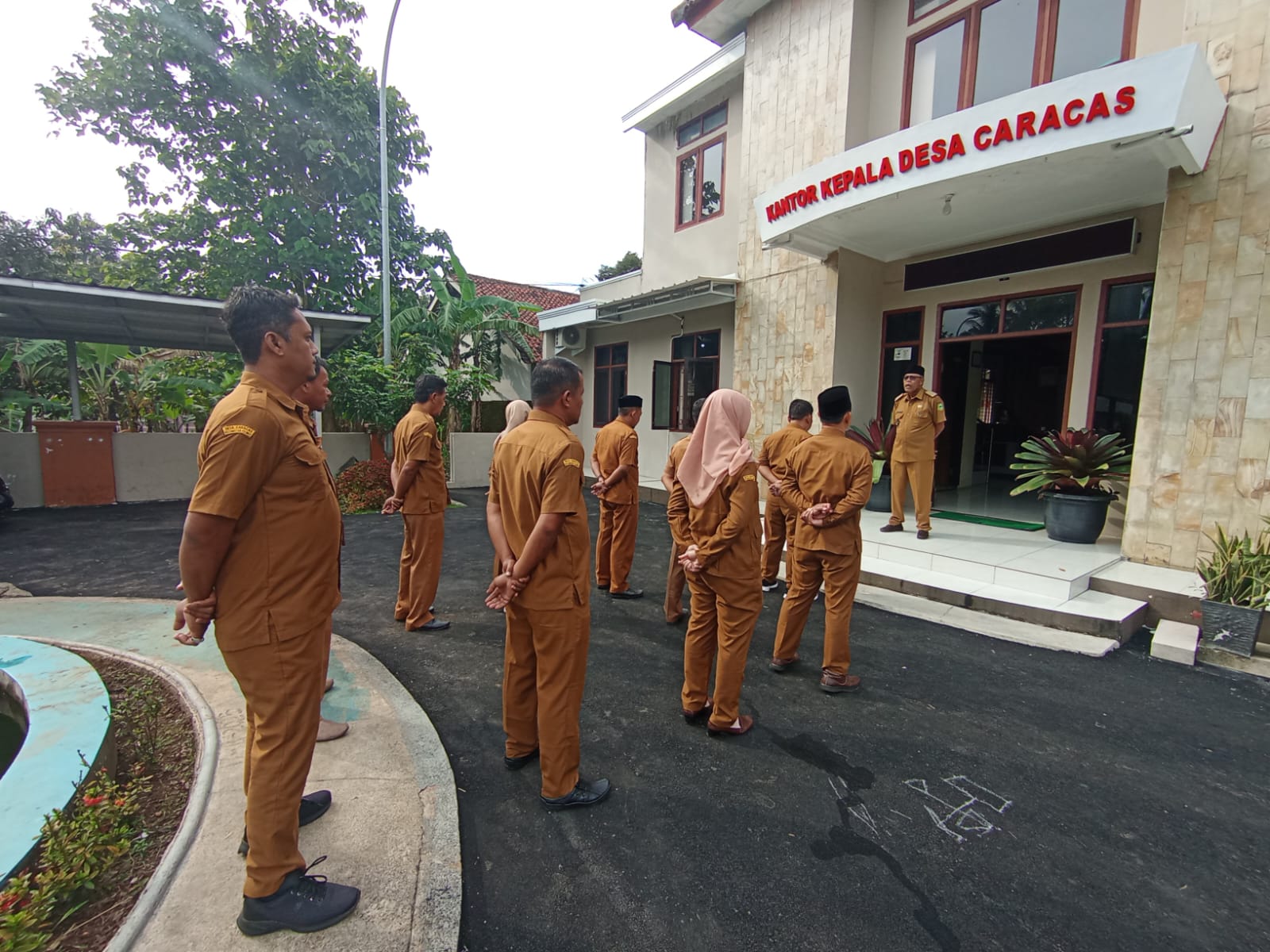 Apel rutin dimulai pada pagi hari dengan suasana tertib dan khidmat. Kegiatan ini dipimpin langsung oleh Kepala Desa Caracas, serta dihadiri oleh Sekretaris Desa, para Kepala Urusan (Kaur), Kepala Seksi (Kasi), dan Kepala Dusun.